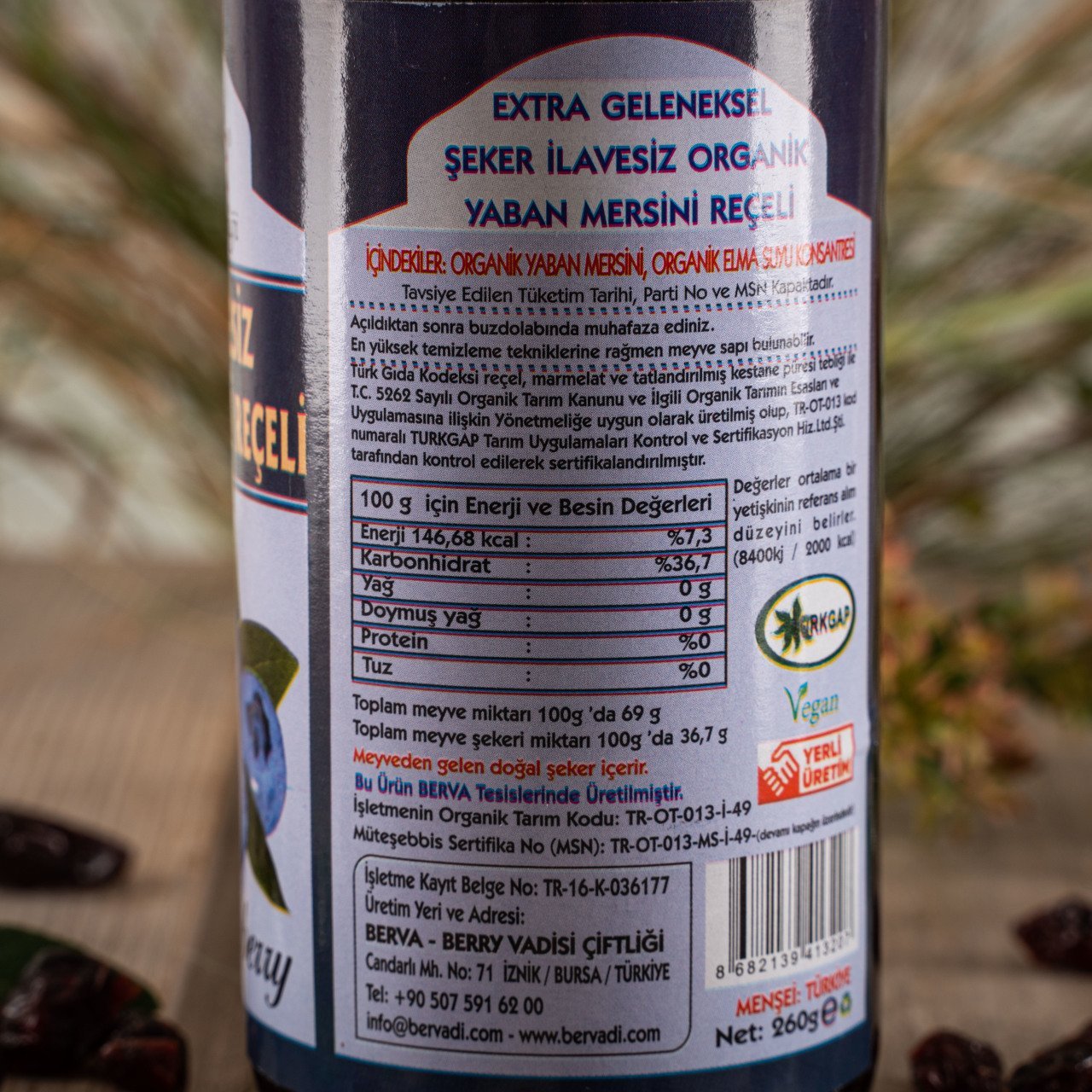 Berva Organik Yaban Mersini Reçeli 260gr